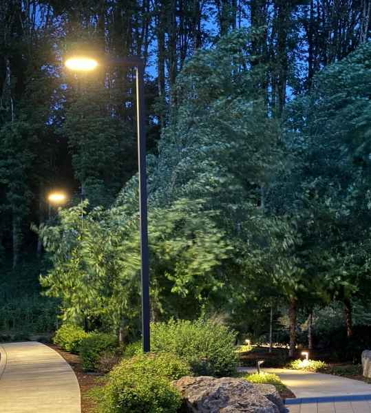 The Light Linear fixtures provide precise optical control that delivers consistent illumination across the parking field. Their low-glare performance strengthens visibility for both drivers and pedestrians, while the slim housing and clean geometry align with the site’s architectural character. Constructed with durable materials and outdoor-rated protection, the luminaires maintain output and appearance through seasonal weather.