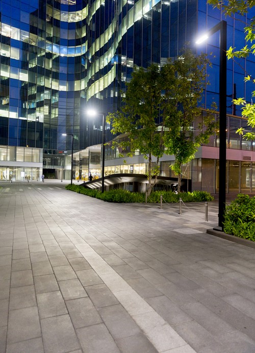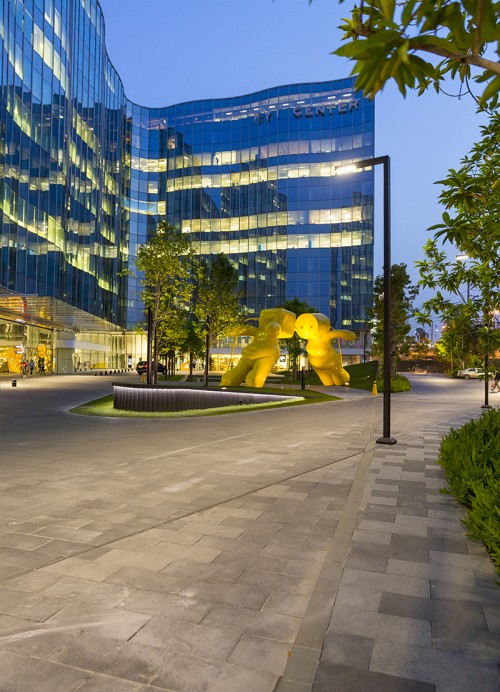 FYI Center is a new generation office building located in Bangkok. The Light Linear PT ULI-21172-W30 Area Luminaire was used to subtly illuminate the main entrance landscape, parking area, and pedestrian areas, while adding aesthetic value to the overall landscape design and architecture.