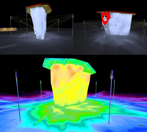 LIGMAN Germany delivered the entire lighting solution that met a specific and challenging client brief: A solution ensuring the structure meets World Cup level requirements of 30 footcandles with high uniformity and no glare for either the climbers or belayer whom control the ropes and no mounting of fixtures allowed anywhere on the wall surfaces or the surface under the crown canopy.