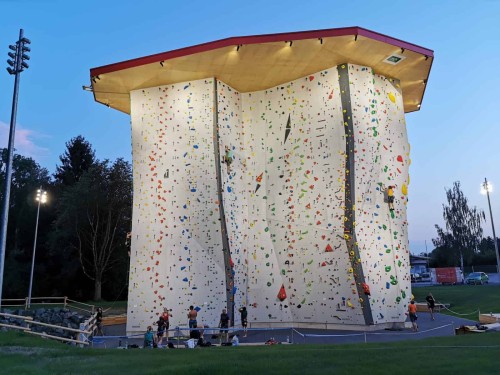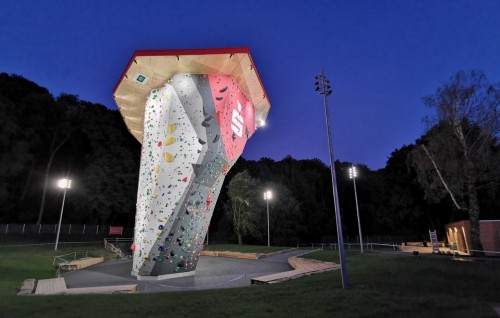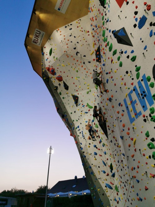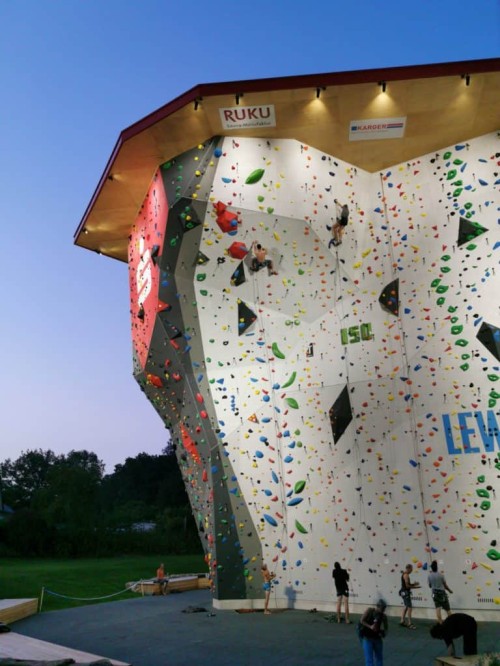 On July 20th, 2019 in Illertissen, Germany, after a year of construction the Sparkassen Arena DAV Climbing Center opened. This international competition level climbing structure is around 65 ft in height and has over 90 climbing routes on 8,611 square feet of climbing surface.